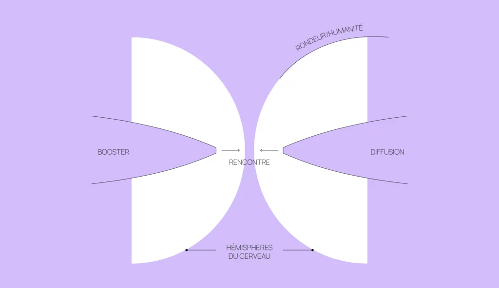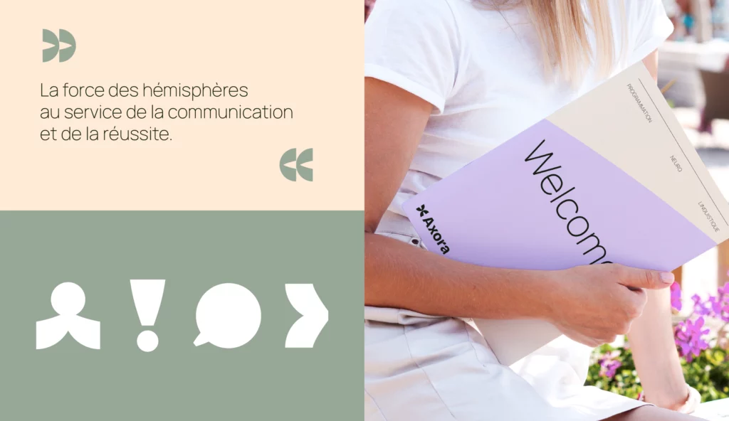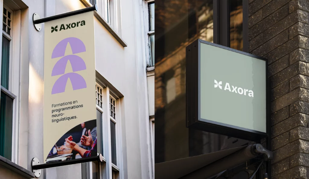 L’identité visuelle et le branding d’Axora incarnent l’harmonie entre les deux hémisphères du cerveau — la logique et la créativité — célébrant la connexion, la stimulation et la transmission.