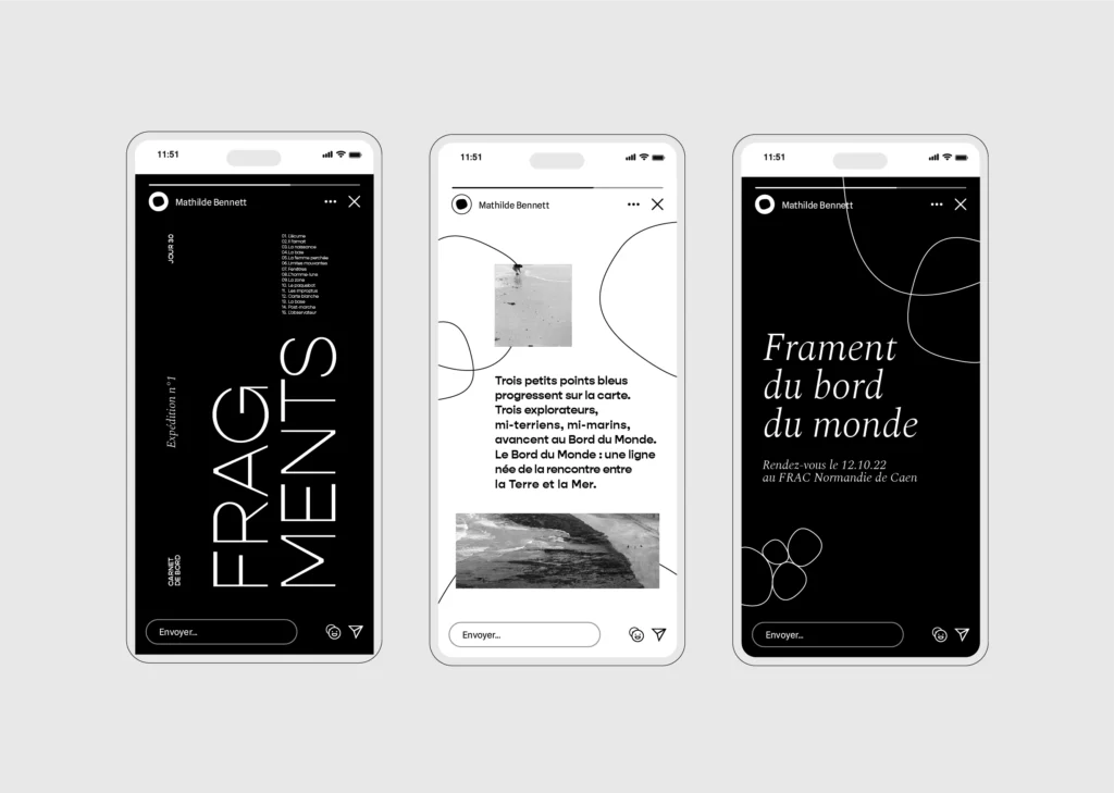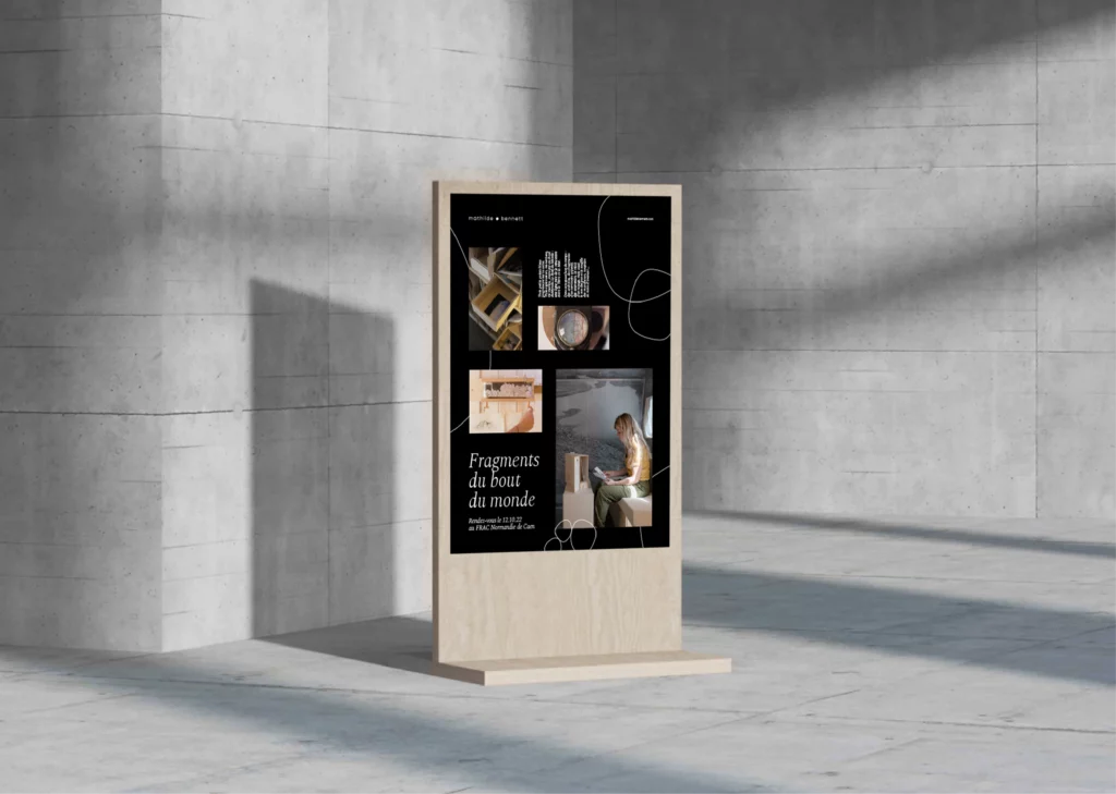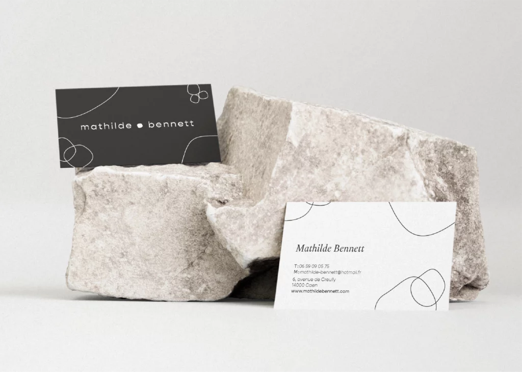 L’identité visuelle imaginée pour elle traduit cette sensibilité : des formes organiques, mouvantes, qui s’amusent à changer d’échelle, comme un écho graphique à son travail.